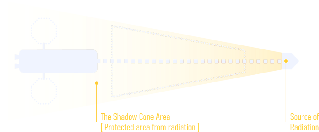 Nuclear Electric Propulsion typically requires an extensive boom, often exceeding 50 meters in crewed or high-power designs, to achieve the necessary separation for radiation isolation. The separation distance ensures critical systems remain fully within the ‘radiation shadow’ cast by the directional reactor shield.
